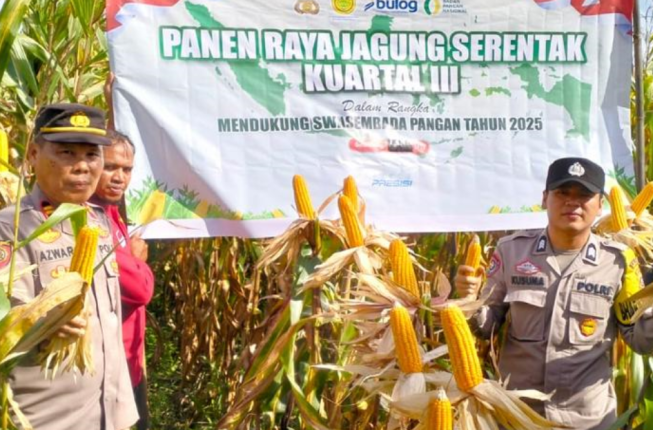 Lentera-PENDIDIKAN.com,MUARA ENIM-Polsek Gelumbang Polres Muara Enim kembali menunjukkan dukungannya terhadap ketahanan pangan nasional melalui pelaksanaan panen jagung Kuartal III yang berlangsung pada Jumat, 14 November 2025. Kegiatan yang dimulai pukul 14.00 WIB ini digelar di lahan masyarakat milik Sugi dan rekan yang berlokasi di Desa Karang Endah, Kecamatan Gelumbang, Kabupaten Muara Enim. Panen ini merupakan bagian dari program berkelanjutan Polres Muara Enim dalam membantu masyarakat meningkatkan produktivitas sektor pertanian.