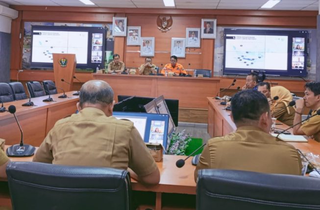 Dalam Rakor tersebut dipimpin langsung oleh Mendagri Tito Karnavian bersama BPBD dan instansi terkait yang diikuti oleh Pemerintah Daerah dan instansi terkait di seluruh Indonesia melalui Aplikasi Zoom Meeting di ruang rapat Serasan Sekundang Muara Enim, Senin (1/12/2025).