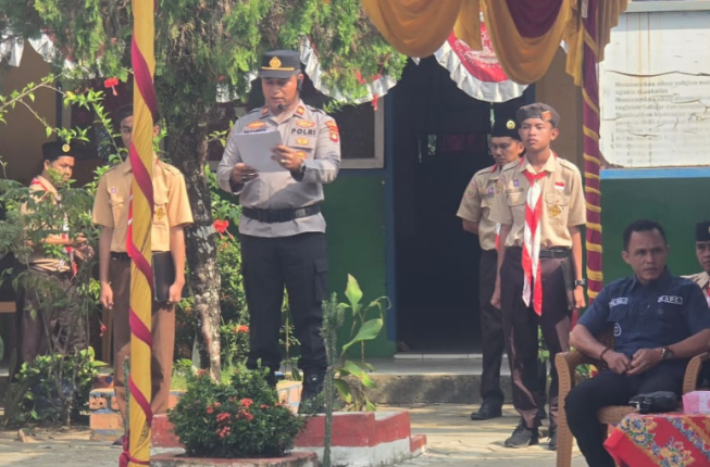 Lentera-PENDIDIKAN.com,MUARA ENIM-Kapolsek Rambang IPTU Zulkarnain Afianata, ST, M.Si, MH, menghadiri sekaligus menjadi Pembina upacara peringatan Hari Ulang Tahun (HUT) Pramuka ke-64 tingkat Kecamatan Rambang yang digelar di halaman SDN 11 Rambang, Desa Baru Rambang, Kecamatan Rambang, Kabupaten Muara Enim. Kamis (28/8/2025) sekira pukul 08.00 Wib.