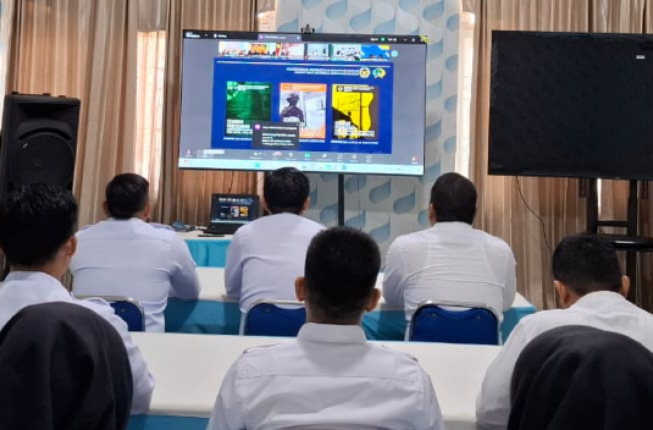 Lentera-PENDIDIKAN.com,MUARA ENIM-Kalapas Muara Enim bersama jajaran mengikuti kegiatan sosialisasi dari Direktorat Jenderal Pemasyarakatan (Ditjenpas) mengenai Standar Pencegahan, Penindakan, dan Pemulihan Gangguan Keamanan dan Ketertiban. Kegiatan ini dilaksanakan secara virtual Kamis, (28/08/2025).