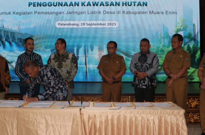 Hal ini diungkapkan Asisten Bidang Perekonomian dan Pembangunan Setda Kabupaten Muara Enim, Ir. H. Ahmad Yani Heriyanto, M.M., usai menyaksikan penandatanganan perjanjian Kerjasama penggunaan Kawasan hutan untuk kegiatan pemasangan jaringan listrik desa di Kabupaten Muara Enim di Kantor PT. PLN Unit Induk Distribusi Sumatera Selatan, Jambi, dan Bengkulu (S2JB), Palembang, Senin (29/9/2025).