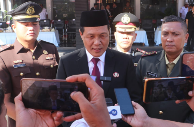 Hal tersebut disampaikan Bupati usai mengikuti Apel Upacara Peringatan Hari Kesaktian Pancasila Tahun 2025 di Lapangan Kantor Bupati Muara Enim, Rabu (1/10). Pada apel yang turut dihadiri Forkopimda, unsur TNI/Polri, pelajar serta Aparatur Sipil Negara (ASN) dilingkungan Pemkab. Muara Enim ini, Bupati selaku inspektur upacara mengajak mengenang Kembali jasa-jasa pahlawan revolusi yang gugur dalam peristiwa G30S/PKI.