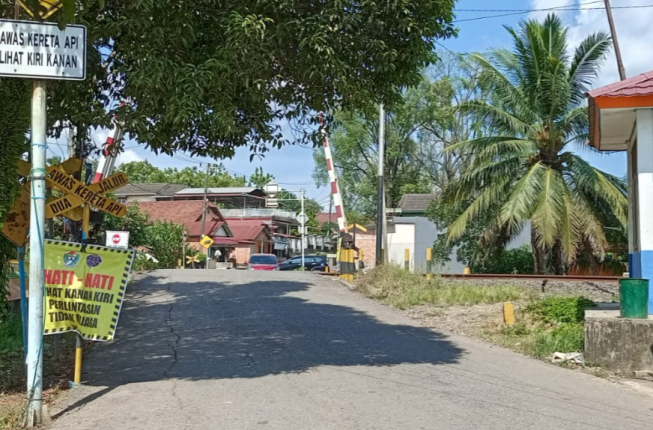 Lebih dari sepekan tidak ada petugas penjagaan, hanya terlihat papan peringatan bertuliskan “Stop Lihat Kiri Kanan Perlintasan Tidak Dijaga”.