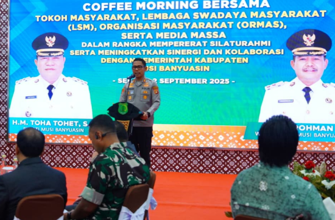 Seruan ini disampaikannya langsung dalam Coffee Morning bersama Asisten 1 Bidang pemerintahan dan kesrah Ardiansyah SE MM PhD, tokoh masyarakat, OPD dan Forkopimda yang berlangsung hangat dan penuh keakraban di Pendopoan Griya Bumi Serasan Sekate, Selasa (2/9/2025).
