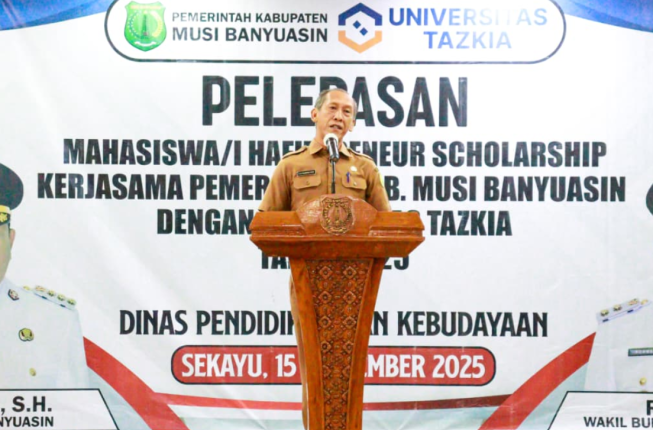 Program ini merupakan hasil kolaborasi strategis antara Pemkab Muba dan Universitas Tazkia untuk tahun akademik 2025/2026. Kehadiran para calon pemimpin masa depan ini menandai langkah nyata pemerintah daerah dalam menciptakan sumber daya manusia (SDM) yang tidak hanya cerdas, tetapi juga memiliki pondasi keimanan yang kuat sebagai hafiz dan jiwa wirausaha (preneur).