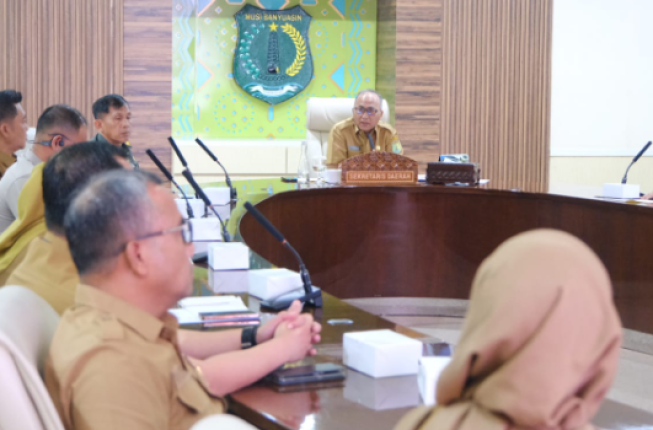 Rapat persiapan berlangsung di Ruang Rapat Serasan Sekate Sekretariat Daerah Muba, Senin (22/9/2025), dipimpin oleh Sekretaris Daerah Kabupaten Muba Dr H Apriyadi MSi bersama jajaran perangkat daerah terkait dan unsur Forum Koordinasi Pimpinan Daerah (Forkopimda).