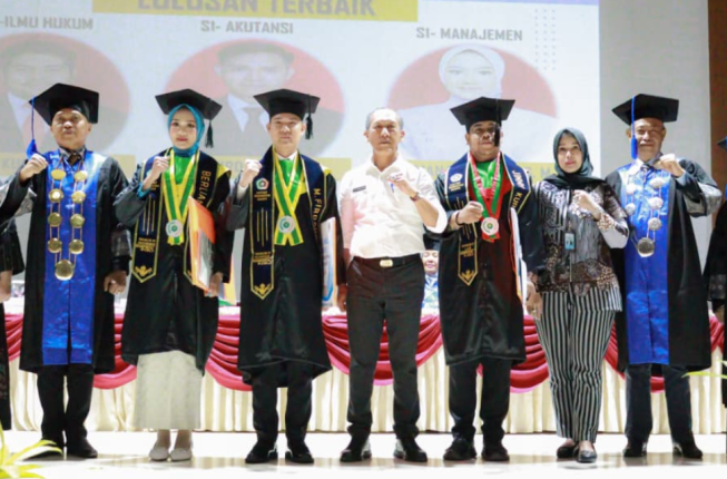 Pada wisuda kali ini, sebanyak 172 mahasiswa berhasil menyelesaikan studi, terdiri dari 76 mahasiswa S1 Manajemen, 36 mahasiswa S1 Akuntansi, dan 60 mahasiswa S1 Ilmu Hukum. Rektor juga mengumumkan tiga lulusan terbaik dengan Indeks Prestasi Kumulatif (IPK) tertinggi dari masing-masing program studi, yaitu Jimmy Kurniawan (S1 Ilmu Hukum, IPK 3,97), Muhammad Firdaus (S1 Akuntansi, IPK 3,84), dan Berliana Marizka (S1 Manajemen, IPK 3,78). Sebagai apresiasi, ketiganya menerima cinderamata.